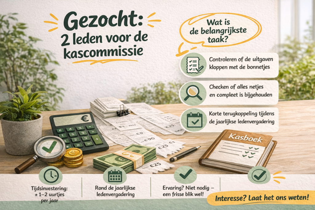 Wij zoeken twee nieuwe leden voor de kascommissie.